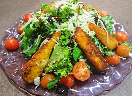 Σαλάτα πράσινη με strips κοτόπουλου πανέ