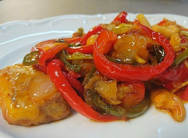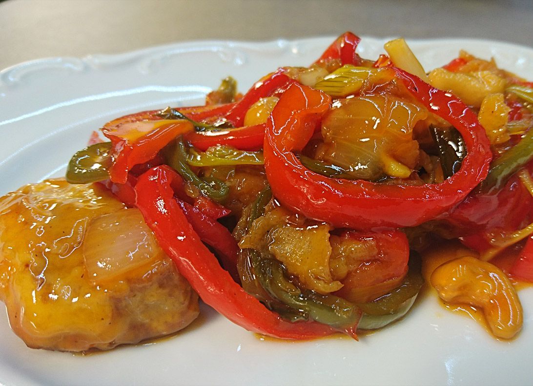 Χοιρινή τηγανιά με μανιτάρια και πιπεριές