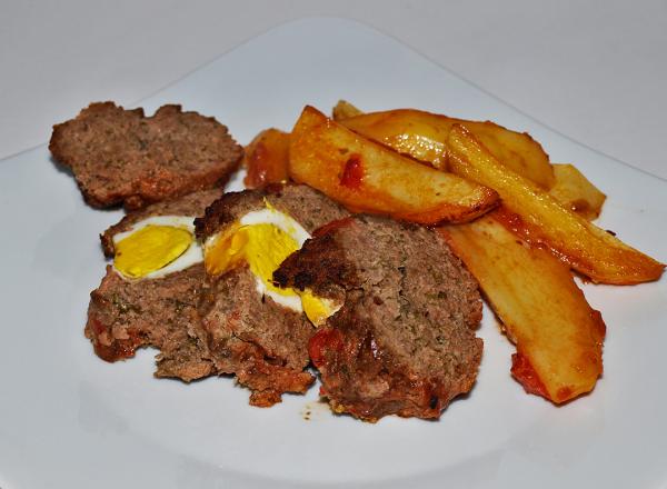 Ρολό γεμιστό με αυγά με 2 είδη κιμά και ροδοκόκκινες πατάτες