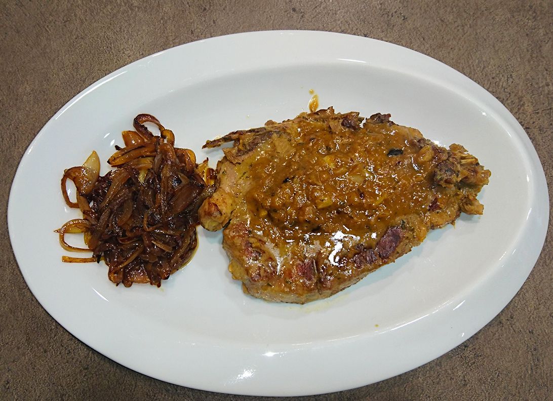 Χοιρινές μπριζόλες στο τηγάνι με μέλι, μουστάρδα