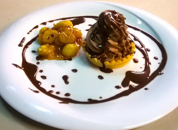 Τάρτα με γρήγορη μους σοκολάτας και καραμελώμενη μπανάνα