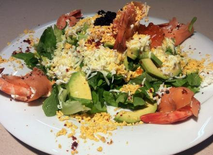 Σαλάτα με καπνιστό σολομό, γαρίδες και αβοκάντο
