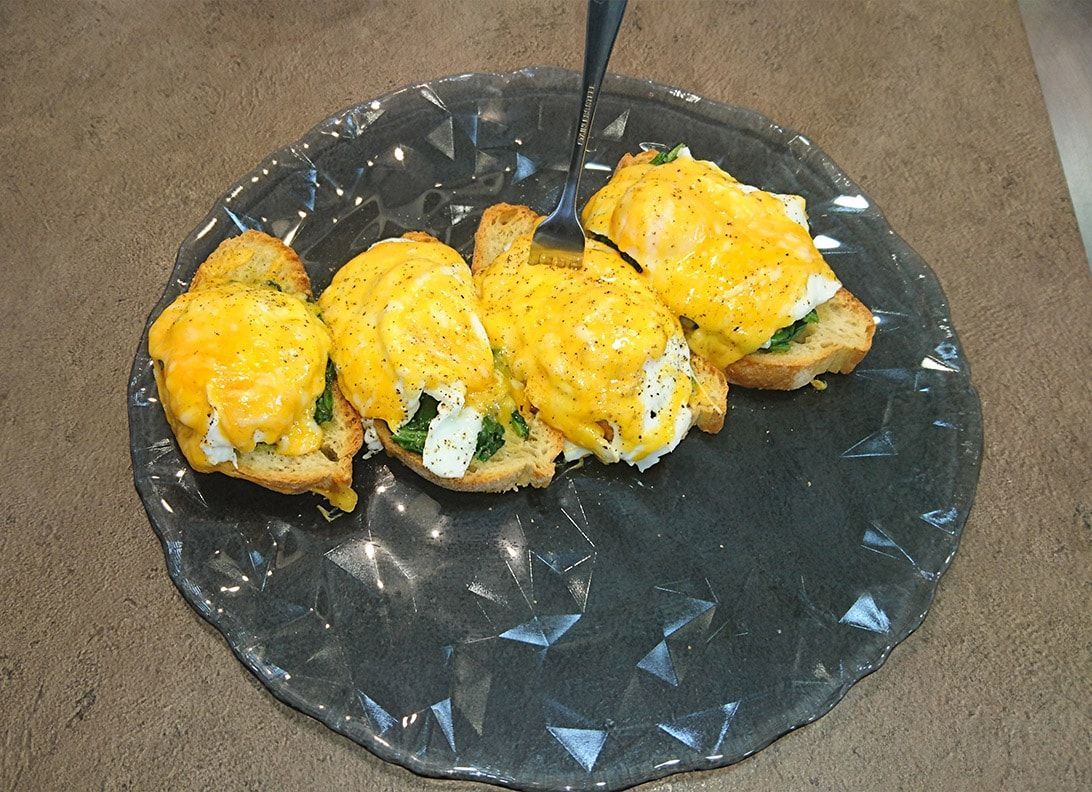 Αβγά ποσέ με σπανάκι και τσένταρ