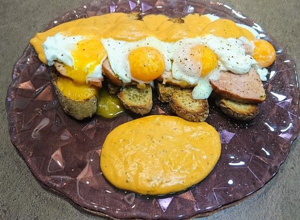 Αβγά ποσέ με αλευρόσαλτσα με πελτέ και σύγκλινο