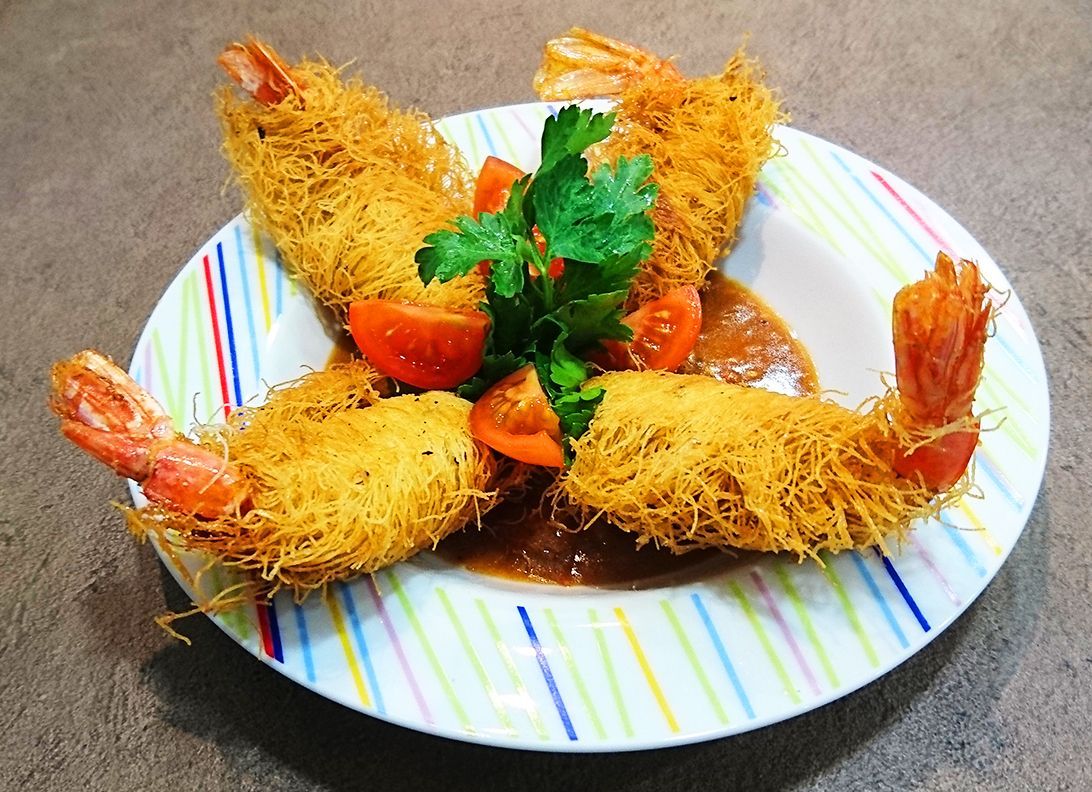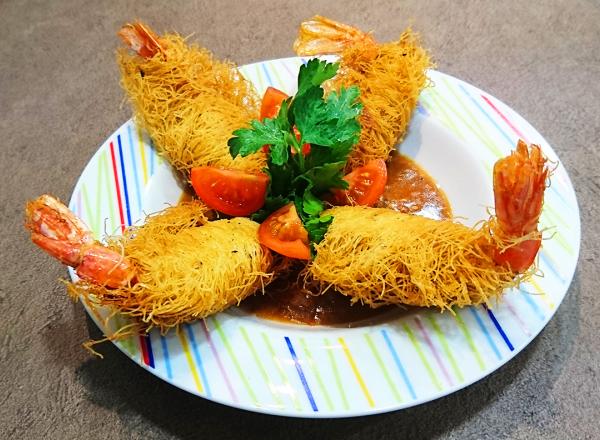 Γαρίδες σε κανταϊφι με σάλτσα βινεγκρέτ